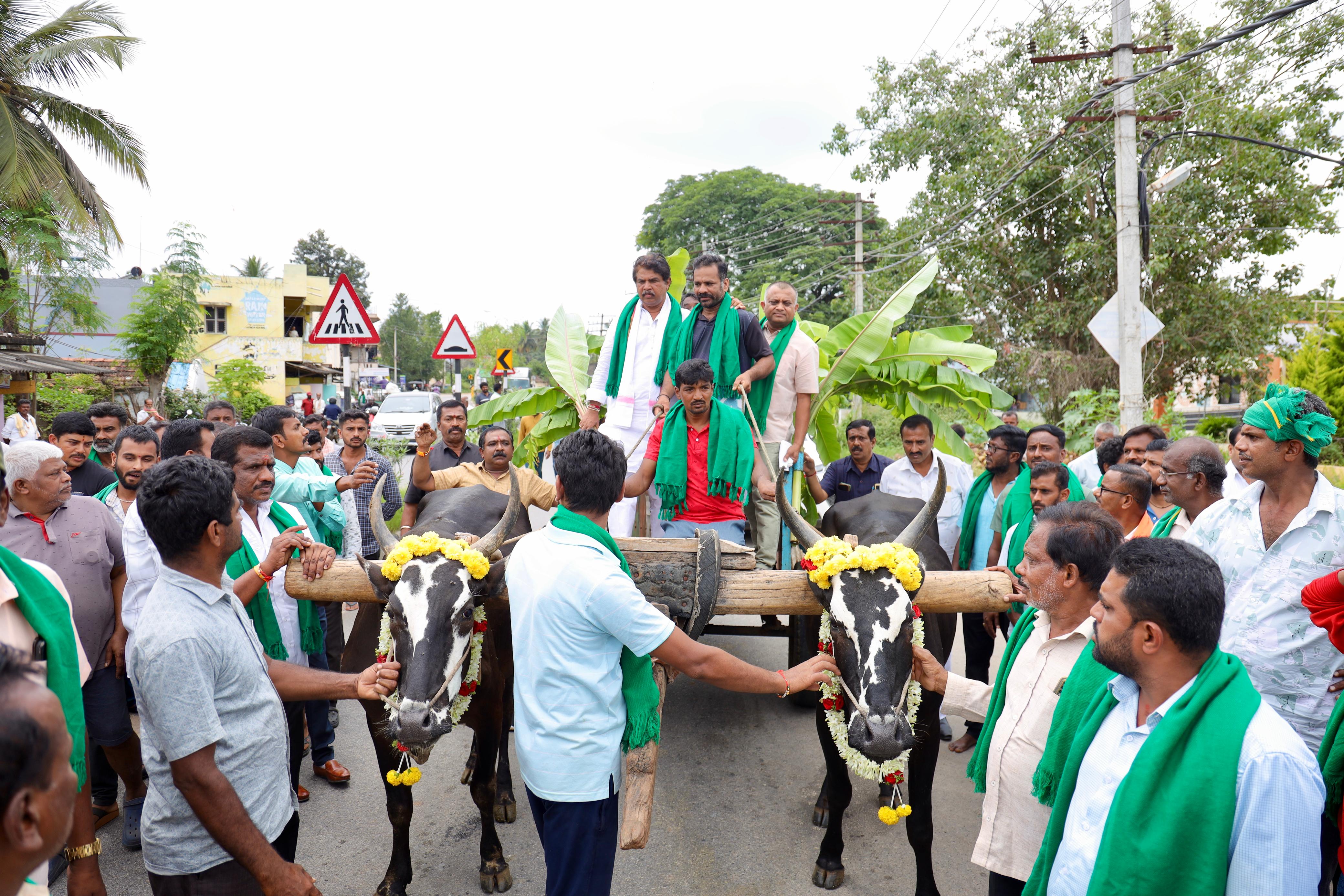 ರೈತರ ಪ್ರತಿಭಟನೆಯಲ್ಲಿ ಭಾಗವಹಿಸಿ ಮಾತನಾಡಿದ ಅವರು, ಗ್ರೇಟರ್ ಬೆಂಗಳೂರು ಹೆಸರಲ್ಲಿ ಕಾಂಗ್ರೆಸ್ ಸರ್ಕಾರ ಬಿಡದಿ, ಬೈರಮಂಗಲ ಮತ್ತು ಕಂಚುಗಾರನಹಳ್ಳಿಯಲ್ಲಿ 9,600 ಎಕರೆ ಜಮೀನನ್ನು ಸ್ವಾಧೀನ ಮಾಡುತ್ತಿದೆ. ಈ ಪೈಕಿ 6,500 ಎಕರೆ ಕೃಷಿಭೂಮಿ ಇದೆ. ಇಲ್ಲಿ 10 ಲಕ್ಷಕ್ಕೂ ಅಧಿಕ ತೆಂಗು ಹಾಗೂ ಮಾವಿನ ಮರಗಳಿವೆ. ಪ್ರತಿ ದಿನ 6 ಲಕ್ಷ ಲೀಟರ್ ಹಾಲು ಉತ್ಪಾದನೆಯಾಗಿ ಕೆಎಂಎಫ್ಗೆ ತಲುಪುತ್ತಿದೆ. 3 ಸಾವಿರಕ್ಕೂ ಅಧಿಕ ರೈತರು ಹಾಗೂ ಕಾರ್ಮಿಕರು ಕೃಷಿಯನ್ನು ನಂಬಿಕೊಂಡಿದ್ದಾರೆ. ಇಷ್ಟು ಫಲವತ್ತಾದ ಜಮೀನುಗಳನ್ನು ಸ್ವಾಧೀನ ಮಾಡಿಕೊಂಡು ಸೈಟುಗಳನ್ನು ನೀಡಲಾಗುತ್ತಿದೆ ಎಂದರು.