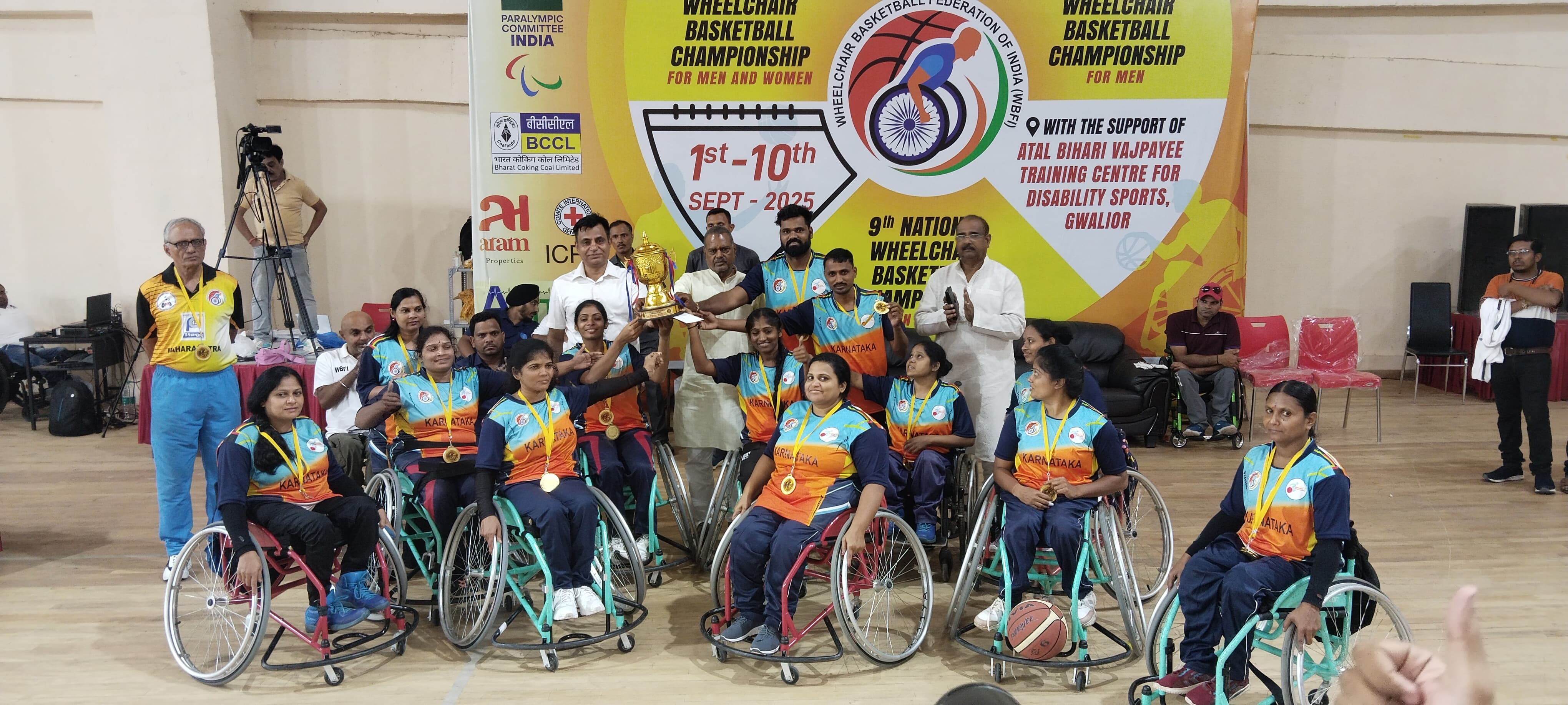 ಗ್ವಾಲಿಯರ್ನ ಅಟಲ್ ಬಿಹಾರಿ ವಾಜಪೇಯಿ ಟ್ರೈನಿಂಗ್ ಸೆಂಟರ್ ಫಾರ್ ಡಿಸೆಬಿಲಿಟಿ ಸ್ಪೋರ್ಟ್ಸ್ನಲ್ಲಿ ನಡೆದ 9ನೇ ರಾಷ್ಟ್ರೀಯ ವ್ಹೀಲ್ಚೇರ್ ಬಾಸ್ಕೆಟ್ಬಾಲ್ ಚಾಂಪಿಯನ್ಷಿಪ್ ಕರ್ನಾಟಕಕ್ಕೆ ಹೆಮ್ಮೆಯ ಕ್ಷಣವಾಯಿತು. ನಮ್ಮ ಪುರುಷ ಮತ್ತು ಮಹಿಳಾ ತಂಡಗಳು ಅದ್ಭುತ ಪ್ರದರ್ಶನ ನೀಡಿ, ರಾಜ್ಯಕ್ಕೆ ಕೀರ್ತಿ ತಂದಿವೆ.